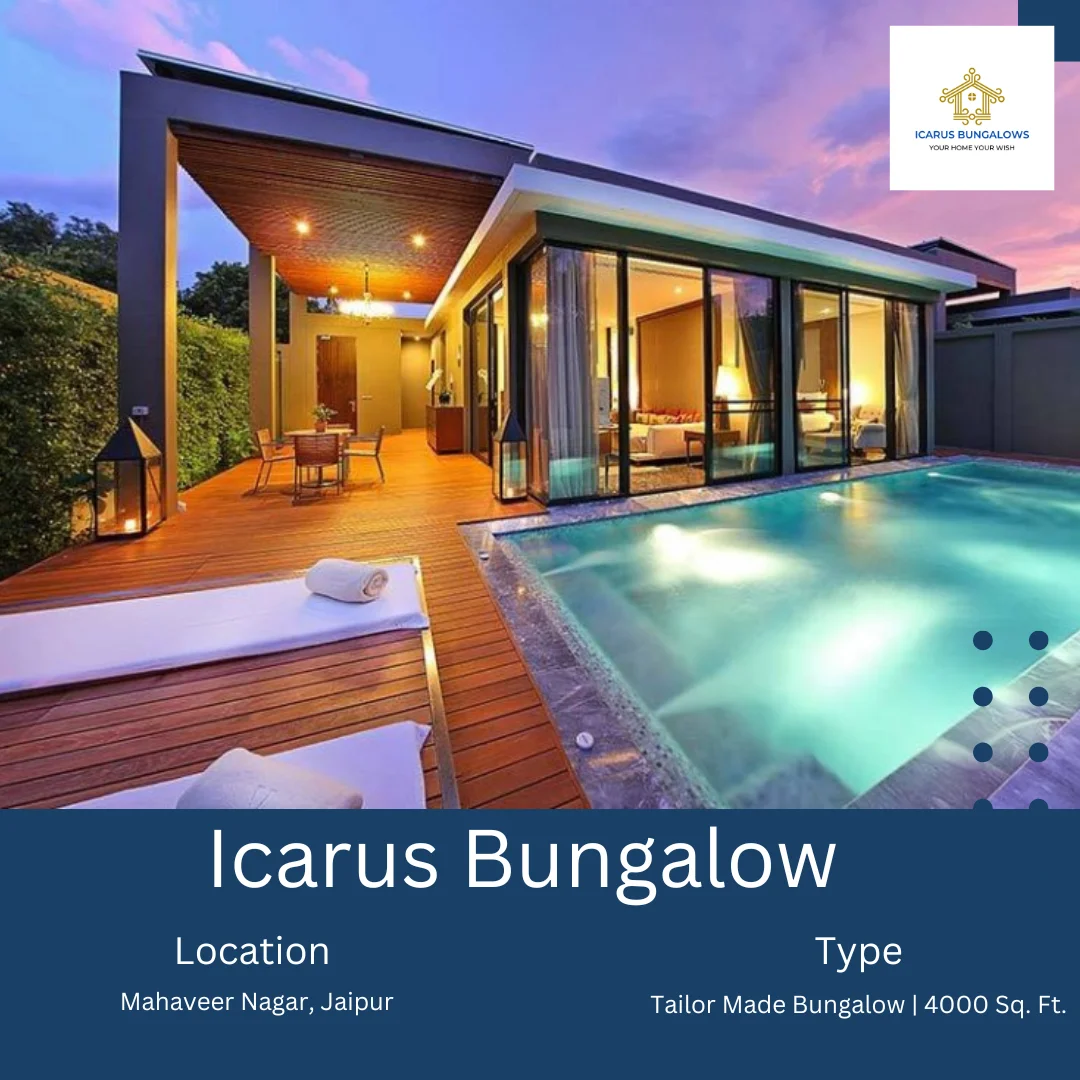 ICARUS BUNGALOWS: Luxury living in Mahaveer Nagar, Jaipur. Near Jain Temple, Gopalpura, airport, railway, metro. Plot: 35×45 ft., 180 Sq.